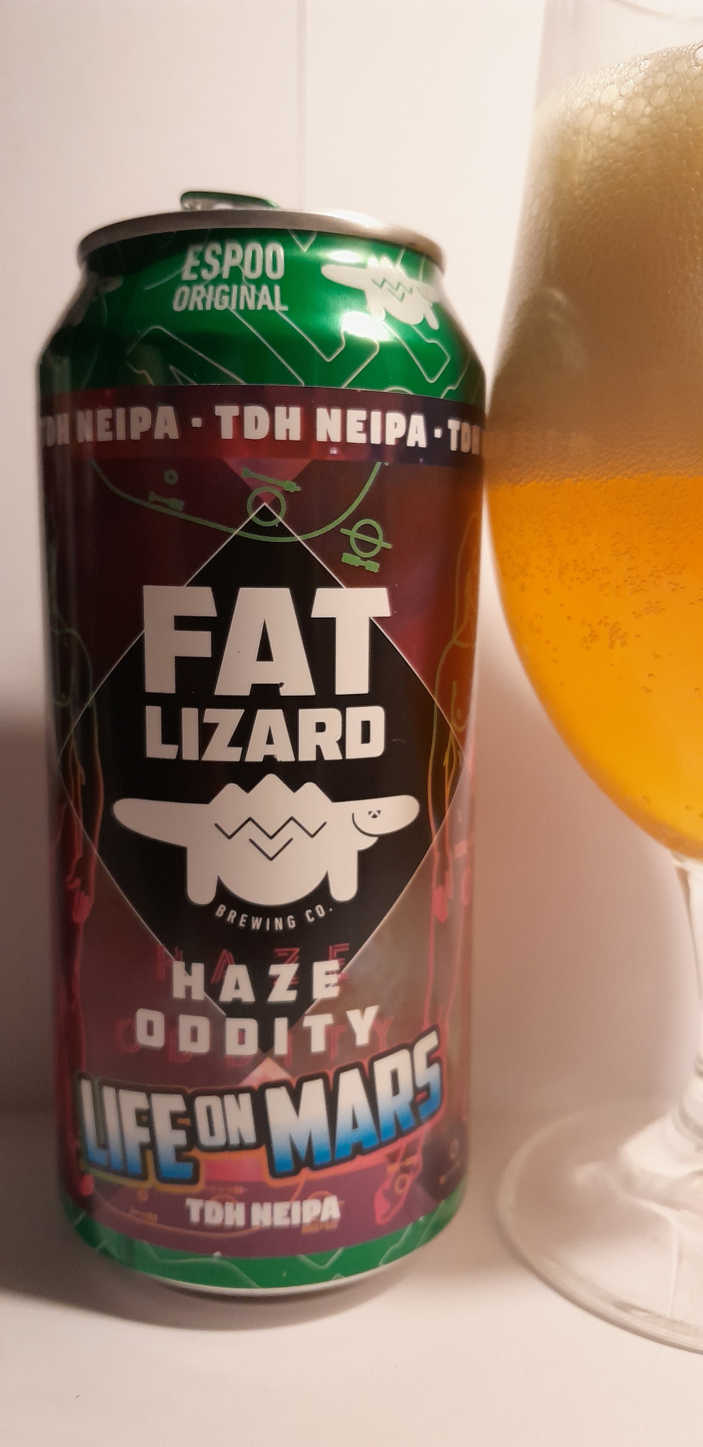 Haze Oddity: Life On Mars (Fat Lizard, Soome) prk 0,44 l. alc 5,0 %vol. Ratebeeri liigimääratlus: "IPA - Hazy / New England (NEIPA)" ja hinnang 60 punkti. Untappd ütleb: "IPA - New England / Hazy" ja 3,53 punkti