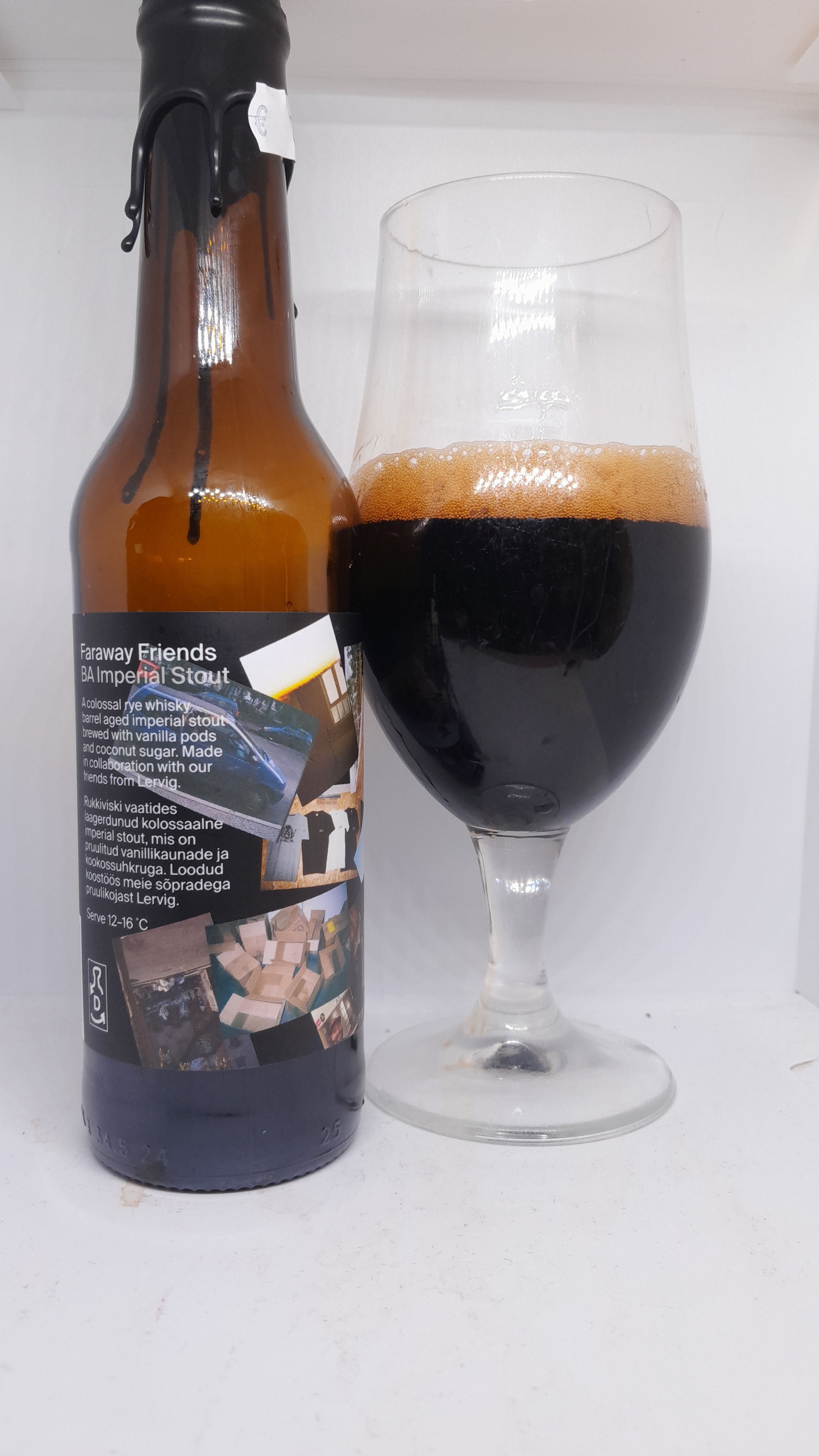 Faraway Friends (Põhjala, Eesti). pdl 0,33 l. alc 13,4%. Untappd liigimääratlus: "Stout - Imperial / Double" ja hinnang 4,29 punkti.